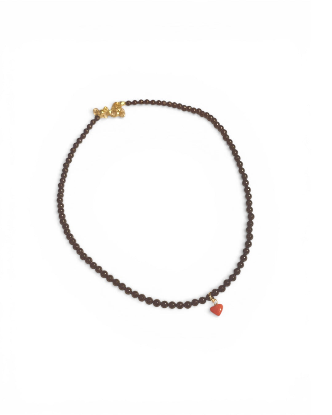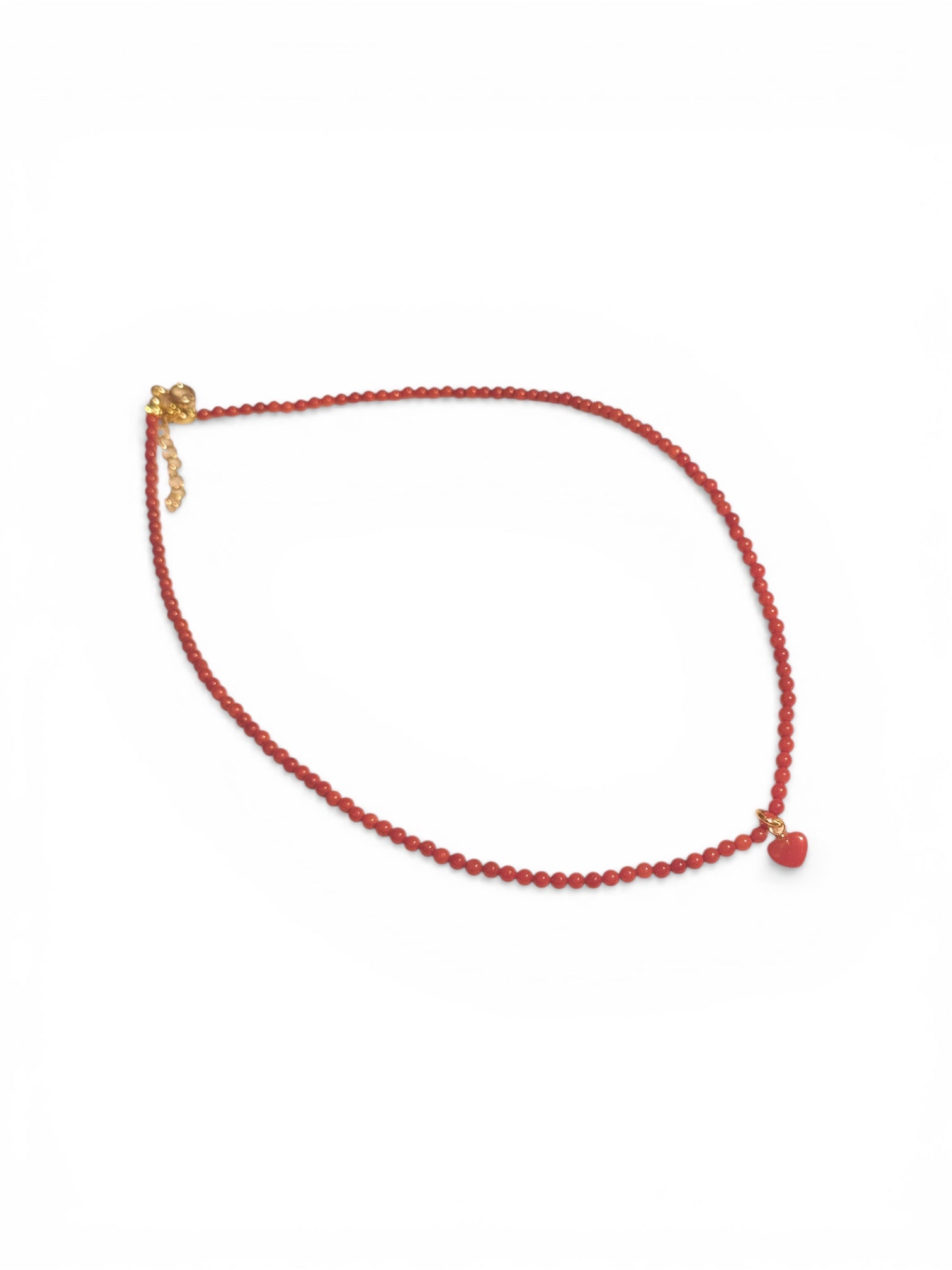 Al centro della collana un cuore in corallo del Mediterraneo certificato, simbolo antico di vita, protezione ed energia.